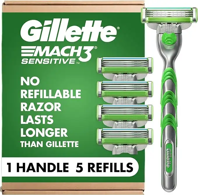 Gillette Mach3 Sensitive Razors for Men, 1 Razor, 5 Razor Blade Refills, Designed for Sensitive Skin — Price History & Tracker | DeserTracker