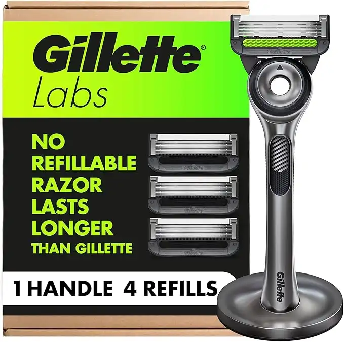 GilletteLabs with Exfoliating Bar by Gillette Razor for Men - 1 Handle, 4 Razor Blade Refills, Holiday Gifts for Men, Includes Premium Magnetic Stand
