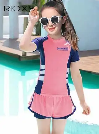 noon.comGirls Swimsuits, Kids Two-Piece Rashguard Swim Set, Short Sleeve Swimming Top And Shorts, Kids Swimwear For Water Sports, Quick Dry Bathing Suits, Sun Protection Swimwear For Beach/ Pool/ Water Park, Girl's Watersports Clothing