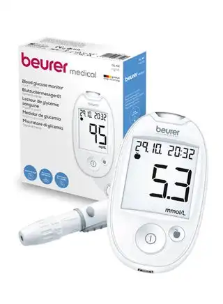 GL 44 - Blood Sugar Monitor | Easy-to-Use Glucose Meter with XXL Display | Soft+Safe Lancing Aid and Data Transfer Capability | White | Lancing Aid