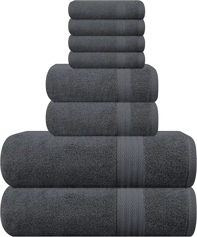 amazon.aeGLAMBURG Ultra Soft 8-Piece Towel Set - 100% Pure Ringspun Cotton, Contains 2 Oversized Bath Towels 27x54, Hand 16x28, 4 Wash Cloths 13x13 Ideal for Everyday use, Hotel & Spa -Charcoal Grey