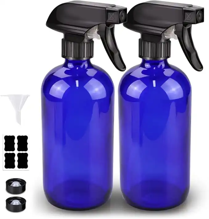 Glass Spray Bottle, Blue Glass Spray Bottle Set & Accessories Refillable for Plants Window Cleaners Aromatherapy Facial Hydration Watering Flowers Hair Care (2 Pack/16 oz) (Blue)