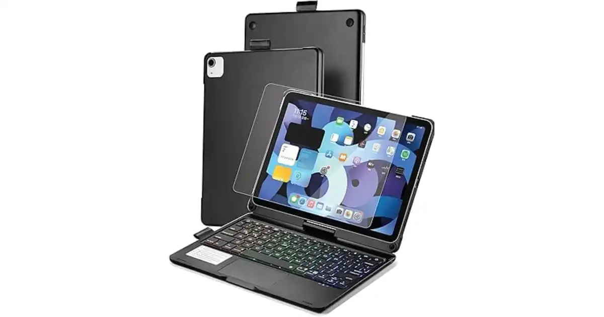 Glassology iPad Keyboard Folio with Backlit Rotatable Keyboard and Trackpad for iPad 10.2 / Air 10.5 (7th, 8th, 9th Gen), English & Arabic, Includes Screen Protector – Black — Price History & Tracker | DeserTracker