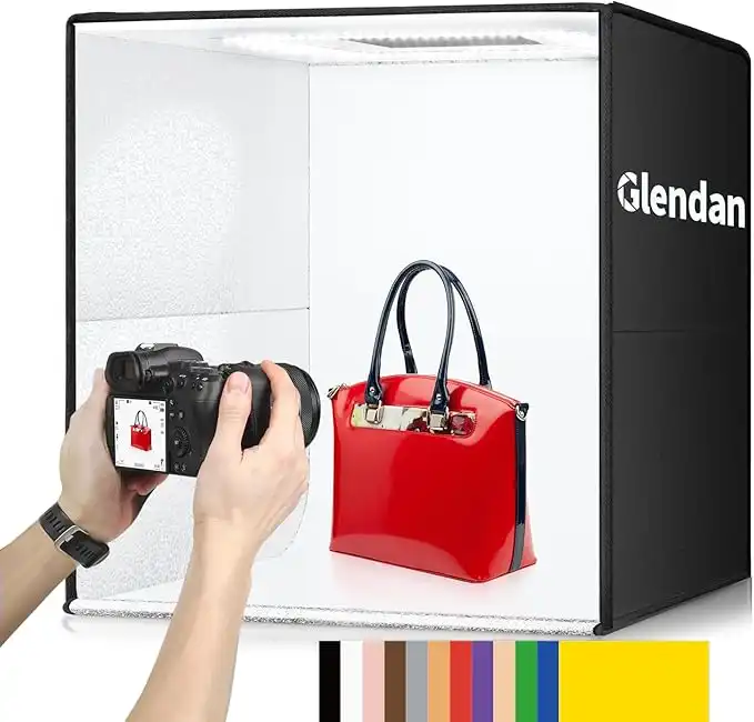 Glendan Light Box Photography: 20x20 inch Photo Studio Light Box with 240 LED Dimmable LED Lights - Folding Photo Box with 12 Color Backdrops for Jewelry Food Electronics Product Photography — Price History & Tracker | DeserTracker
