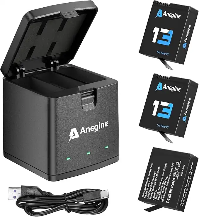 Go Pro Hero 13 Battery 2100mAh and LED 3-Slot Storage Charger for GoPro Hero 13 Black Enduro Rechargeable Battery with Type-C (3-Pack)