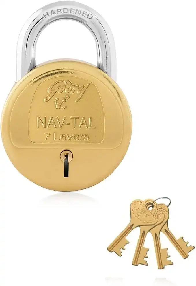 amazon.aeGodrej Locks I Navtal 7 levers 65 mm I 4 Keys I Padlock for Main Door I Gate Lock I Tool Box, Shutters, Shops & Offices I Strong Hardended Corrosion Resistant Shackle I Brass Material & Brass Finish