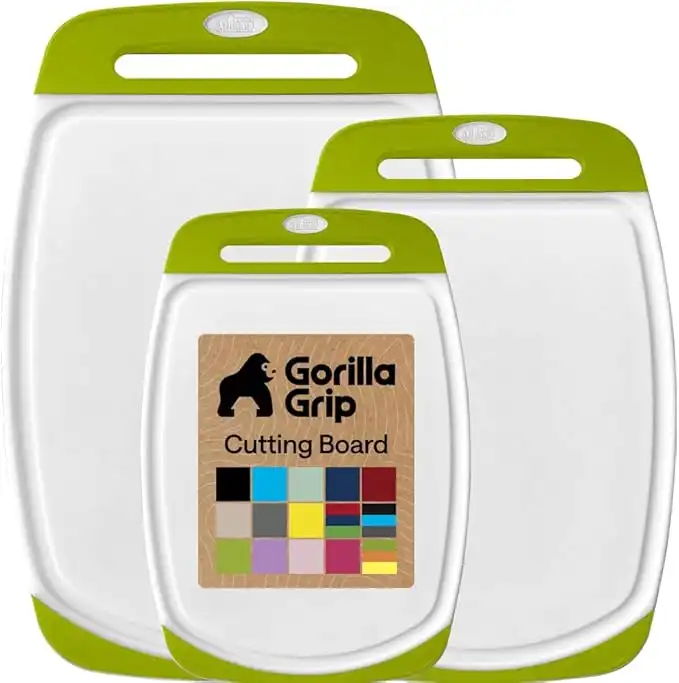 Gorilla Grip The Original Oversized 100% BPA Free Reversible Durable Kitchen Cutting Board Set of 3, Juice Grooves, Dishwasher Safe, Easy Handle Border, Food Chopping Boards, Cooking, Lime Green