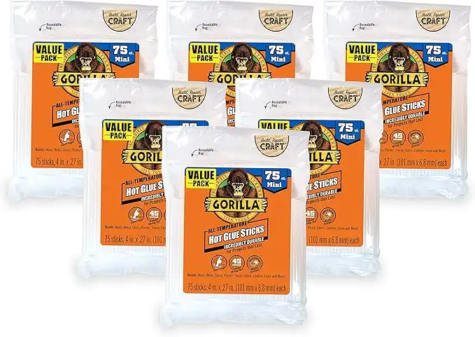 Gorilla Hot Glue Sticks, Mini Size, 4" Long x .27" Diameter, 75 Count, Clear, (Pack of 6) — Price History & Tracker | DeserTracker