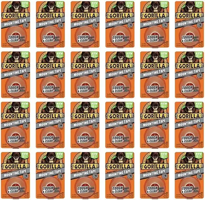 Gorilla Mounting Tape, Tough and Clear, Double-Sided, 1" x 60", Clear - 24 Pack