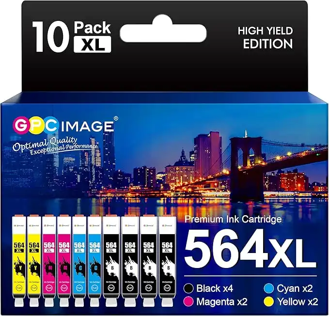 GPC Image Compatible Ink Cartridge Replacement for HP 564XL 564 XL Compatible with DeskJet 3520 3522 Officejet 4620 Photosmart 5520 6510 6520 7520 7525 Printer Tray (Black Cyan Magenta Yellow, 10P)