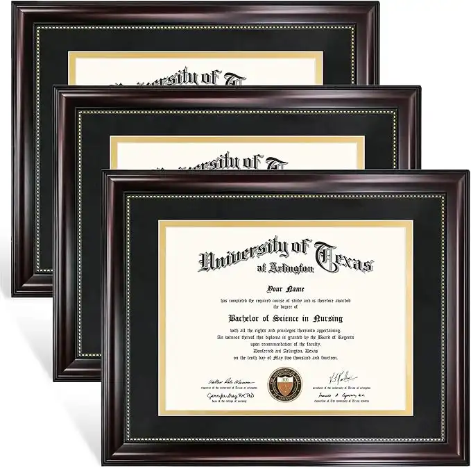 GraduationMall 11x14 Diploma Frame for 8.5x11 Doent Certificate Set of 3, Professional Wooden Look with Black Over Gold Mat, Real Glass, Mahogany with Gold Beading — Price History & Tracker | DeserTracker