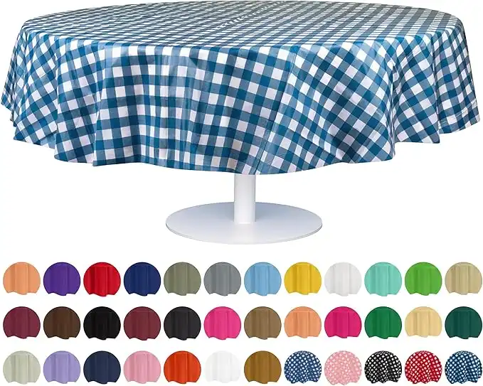 amazon.aeGrandipity Blue Gingham Checkered 12 Pack Premium Disposable Plastic Picnic Tablecloth 84" Inch Decorative Round Table Cover