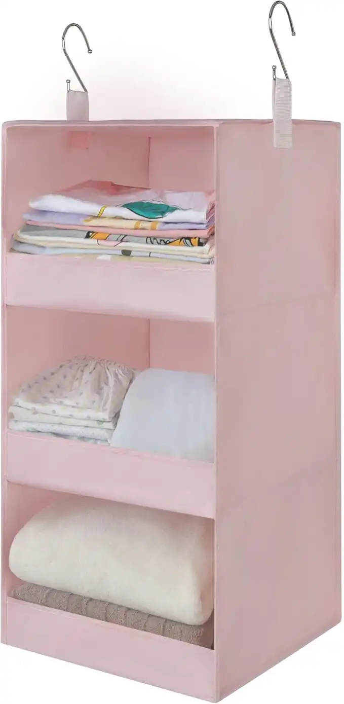 GRANNY SAYS Hanging Shelf, Cupboard Organiser with 3 Compartments, 1 Piece Wardrobe Hanging Organiser, Sturdy, Pink Organiser, Closet, Hanging, Foldable Hanging Shelf, Fabric, Slim