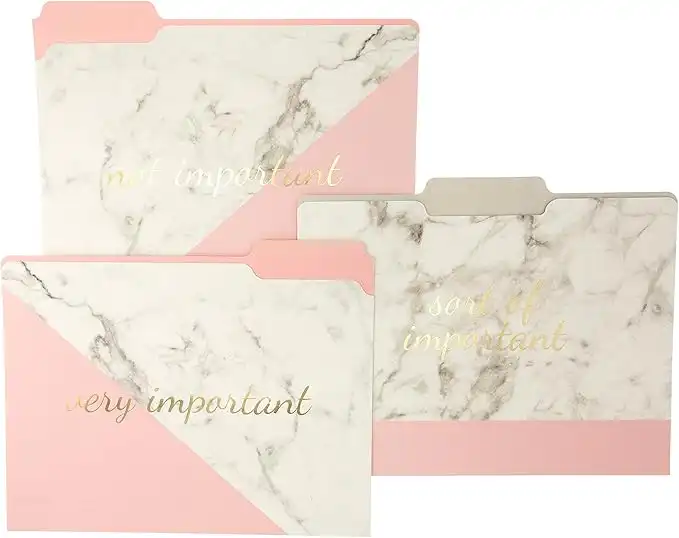 Graphique Blush Marble File Folder Set – File Set Includes 9 Folders and 3 Unique "Important" Designs, Embellished w/Gold Foil on Durable Triple-Scored Coated Cardstock, 29.8 cm x 24.1 cm
