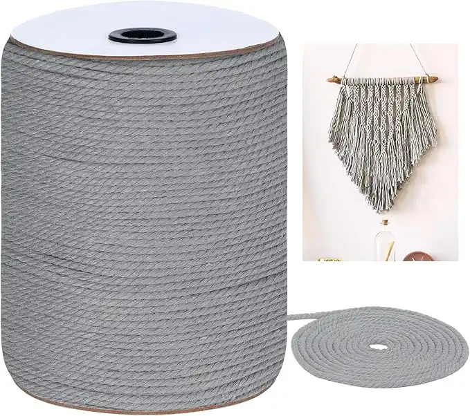 amazon.ae(Gray) - Macrame Cord 3mm x 328Yards, Coloured Natural Cotton Macrame Rope - 3 Strands Twisted Colourful Macrame Cotton Cord for Wall Hanging, Plant Hangers, Crafts, Gift Wrapping and Wedding Decor...