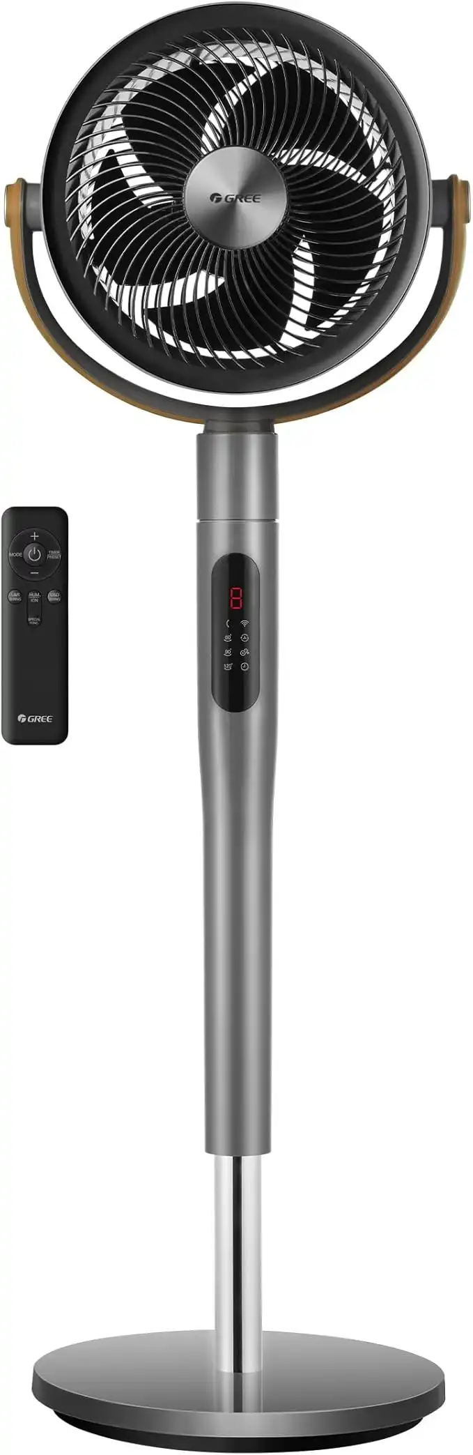 Gree 43 inch, Oscillating Pedestal Circulator fan, Powerful Air Throw Up to 14m, with Remote, 8H Energy-Saving Timer, Digital LED Touch Display 8 Speeds, Home&Office -GCF-2305BAG5-Grey-1Year Warranty