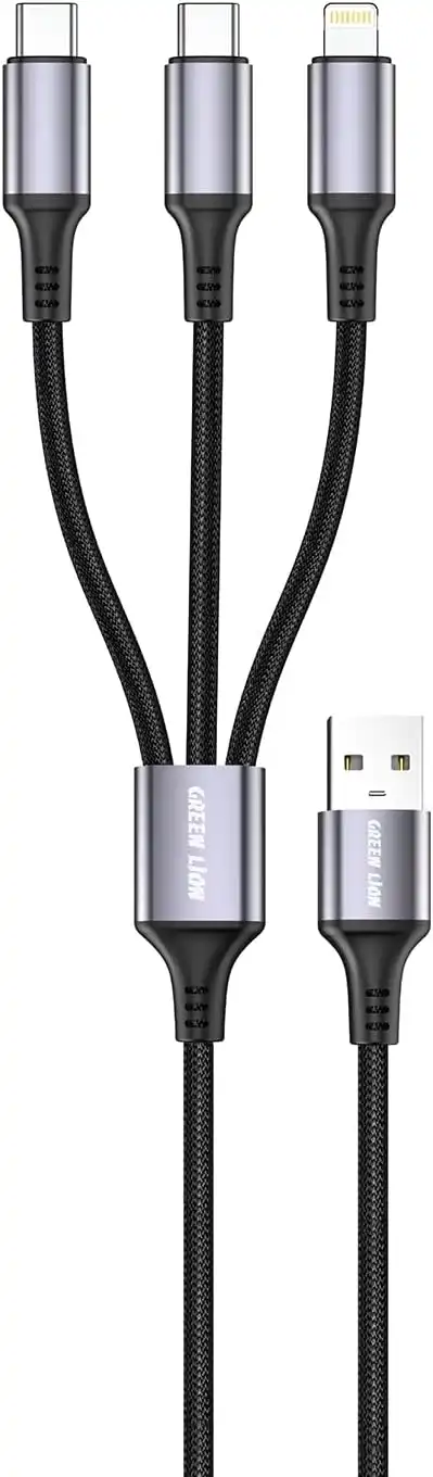 Green Lion 3 in 1 USB-A Cable to Dual USB-C & for iPhone Port, 1m Braided Fast Charger Cord 27W Max, High Speed Data Transfer 480Mbps, Multi Fast Charging Cable for iPhone 17/16/15 & Galaxy S25/S24 — Price History & Tracker | DeserTracker