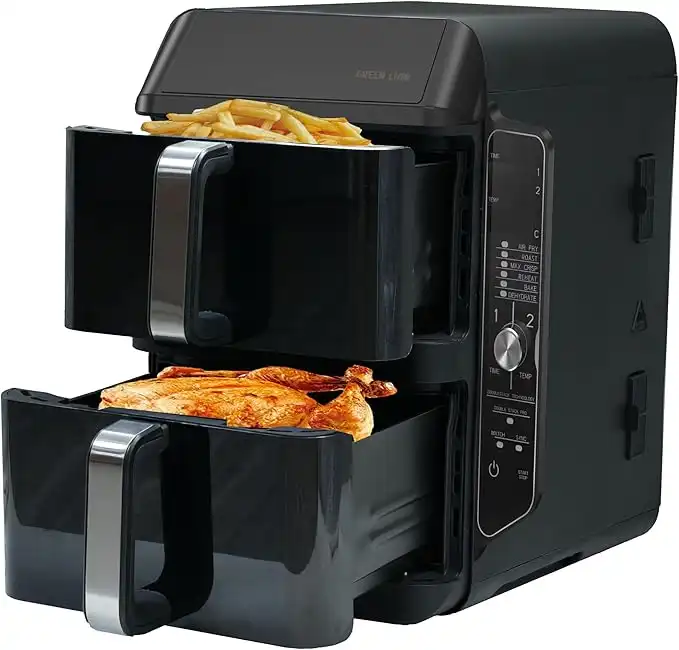 Green Lion Double Decker Air Fryer, Double Stack Air Fryer with Rapid Air Technology, Dual Drawer Family Size 11.2L and 2400W Power Airfryer, 6 Presets, LED Touch Display Fryer with Non-Stick Coating