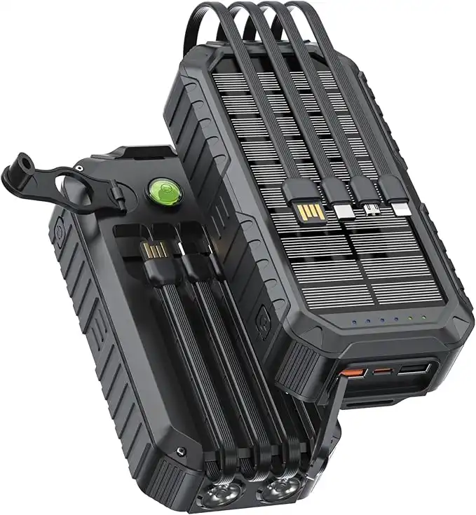 Green Lion Solar Mate 20000mAh Power Bank, Solar & Hand Crank Charger with 4 Built-in Cables, Dual Flashlight, Compass, PD 20W and QC 22.5W Fast Charging for Camping