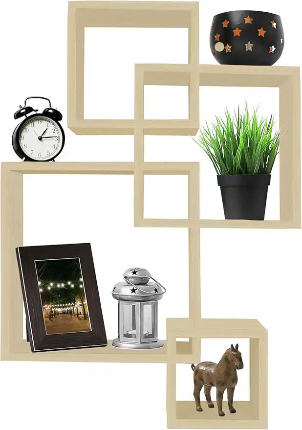 Greenco 4 Cube Intersecting Wall Mounted Floating Shelves-Natural Finish