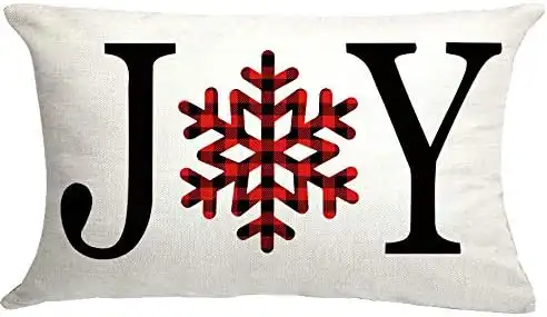 GTEXT Joy with Plaids Snowflake Throw Pillow Cover Merry Christmas Cuhion Cover Buffalo Check Snowflake Farm Decor 20x12 inch Outdoor Pillow Cushion,Sofa — Price History & Tracker | DeserTracker