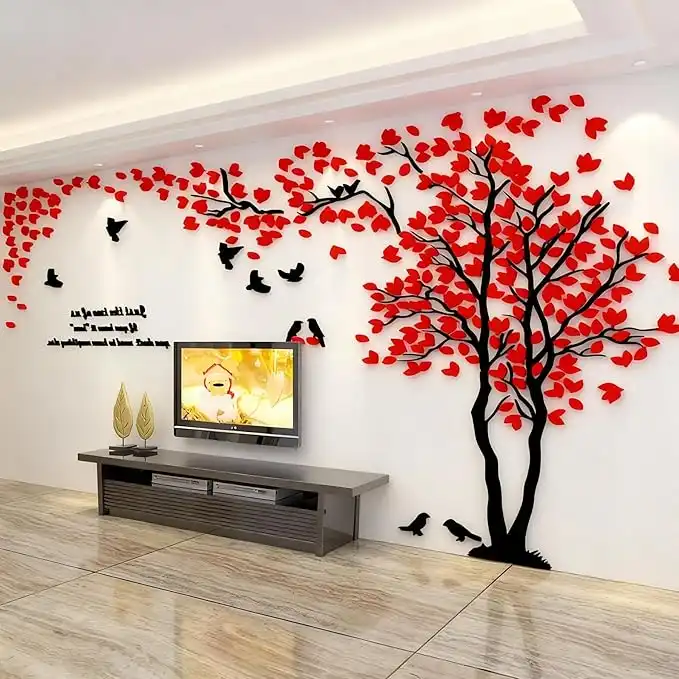 guangmu 3D Tree Wall Stickers - DIY Tree and Birds Wall Decals Family Couple Tree Stickers Murals Wall Decor for Living Room Bedroom TV Background Home Decorations(Red Right,XL-158X79in)