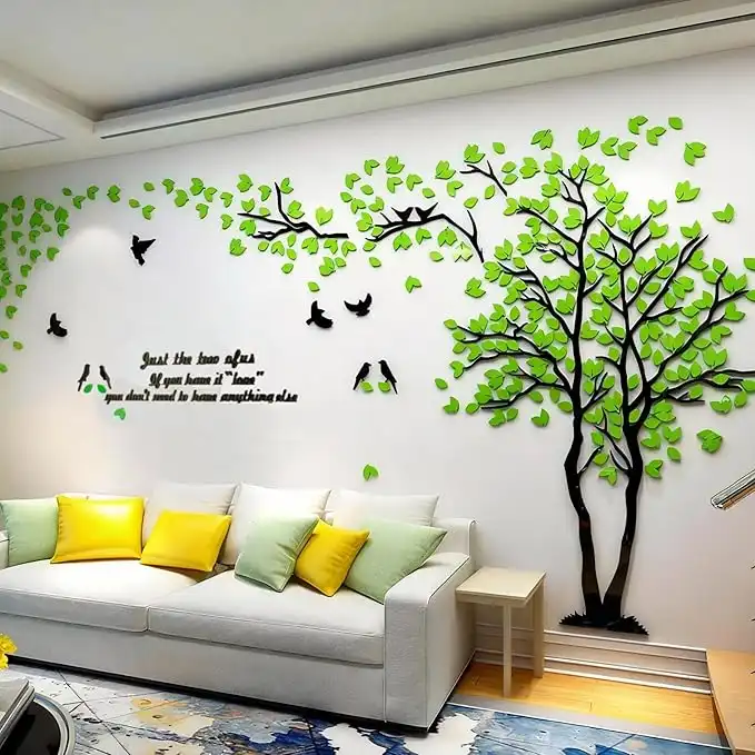 amazon.aeguangmu 3D Tree Wall Stickers - DIY Tree and Birds Wall Decals Family Couple Tree Stickers Murals Wall Decor for Living Room Bedroom TV Background Home Decorations(Green Right,XL-158X79in)