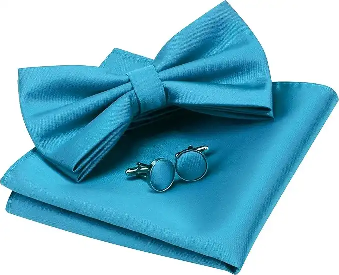 GUSLESON Mens Solid Color Double Fold Pre-tied Bow Tie and Pocket Square Cufflink Set with Gift Box — Price History & Tracker | DeserTracker