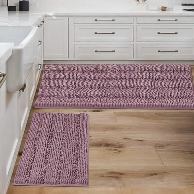 amazon.aeH.VERSAILTEX 2 Piece Bathroom Set Bathroom Rugs Bath Mats Sets Super Absorbent Chenille Striped Bath Mats Non Skid Machine Wash Dry Rugs for Bathroom Floor(Mauve/Rose, 47 x 17 Plus 17 x 24 - Inches)