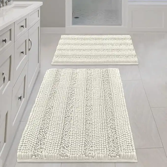 H.VERSAILTEX Super Thick Striped Shaggy Chenille Bath Mat Set 2-Pack (20x32/17x24)