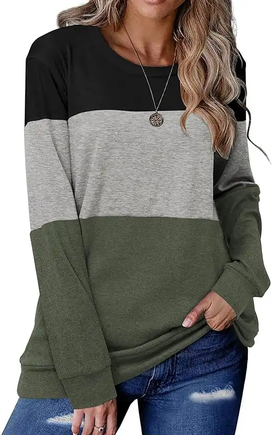 Halife Women's Long Sleeve Color Block Tops Crewneck Sweatshirts Pullover Tunic Shirts Blouses — Price History & Tracker | DeserTracker