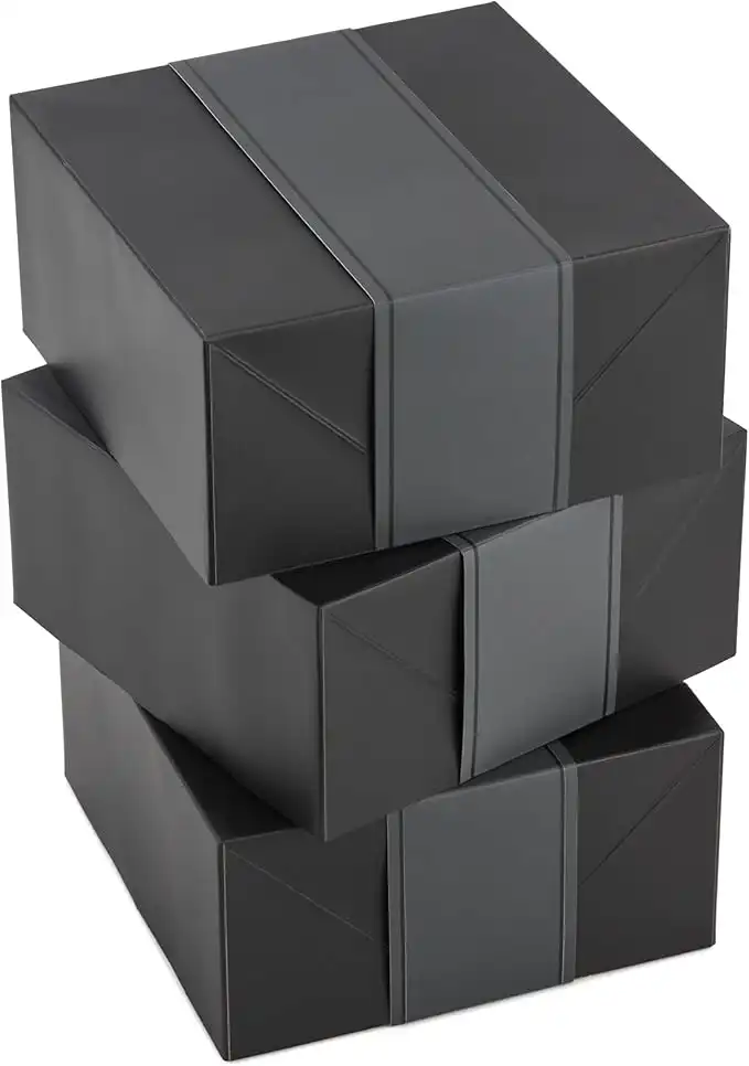 Hallmark 8" Medium Black Gift Boxes with Wrap Bands (3 Boxes, 3 Wrap Bands) for Weddings, Bridal Parties, Valentine's Day, Graduations, Retirements — Price History & Tracker | DeserTracker