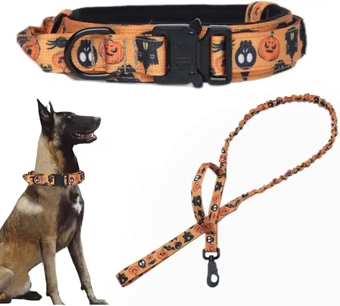 amazon.aeHalloween Tactical Dog Collar and Leash Set Tactical Dog Collar with Handle Bungee Leash Adjustable Military Training Nylon Collar Dog Training Collar Leash Set with Control Handleand(Orange M