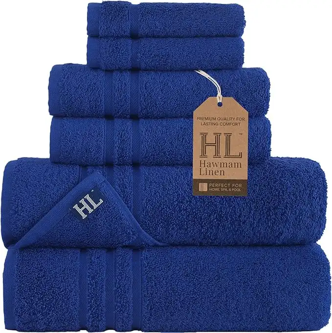 amazon.aeHammam Linen Black 6 Pack Bath Towels Sets for Bathroom Original Turkish Cotton Soft, Absorbent and Premium 2 Bath, 2 Hand, 2 Washcloths