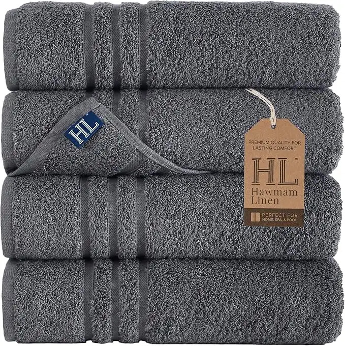 Hammam Linen Cool Grey Bath Towels 4-Pack - 27x54 Soft and Absorbent, Premium Quality Perfect for Daily Use 100% Cotton Towel