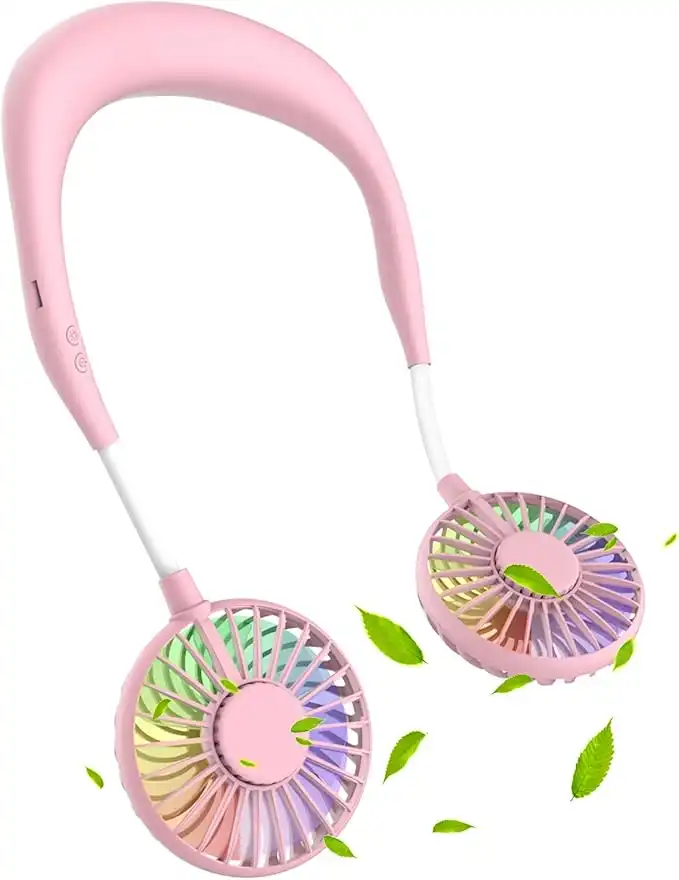 amazon.aeHand Free Mini USB Personal Fan - Rechargeable Portable Headphone Design Wearable Neckband Fan,3 Level Air Flow,7 LED Lights,360 Degree Free Rotation Perfect for Sports,Office and Outdoor (Pink)
