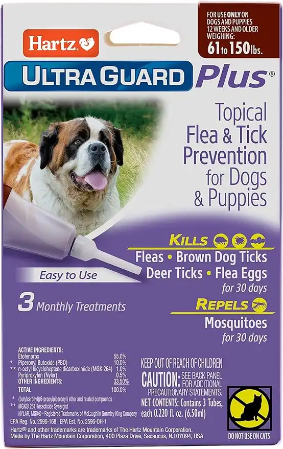 Hartz UltraGuard Plus Topical Flea & Tick Prevention for Dogs and Puppies - 61-150 lbs, 3 Monthly Treatments — Price History & Tracker | DeserTracker