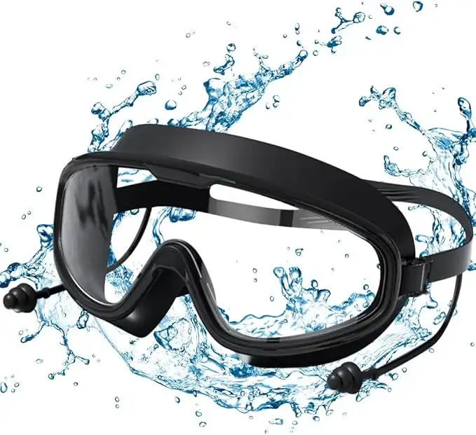 HASTHIP® Adult Swim Goggles, Big Frame Competition Professional Swim Goggles Swimming with Waterproof Earplugs, Leakproof Anti-fog UV Protection Diving Goggles for Surfing, Kayaking, Black — Price History & Tracker | DeserTracker