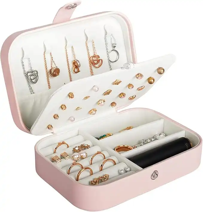 Hatori Travel Jewelry Box, PU Leather Small Jewelry Organizer for Women Girls, Portable Mini Travel Case Display Storage Holder Boxes for Stud Earrings, Rings, Necklaces, Bracelets (Pink) — Price History & Tracker | DeserTracker