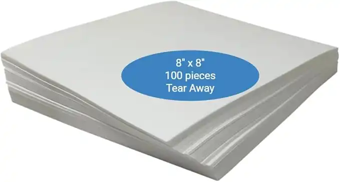 HBI H.B.I. PRODUCTS Tear Away Embroidery Stabilizer - 1.8 ounce Medium Weight 8"x8" Tearaway for Machine Embroidery Fits 4x4 Hoops 100 sheets