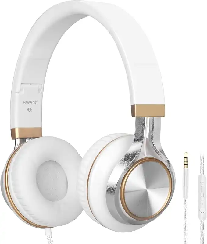 amazon.aeHeadphones,BEINSOUND HW50C Stereo Folding Headsets Strong Low Bass Headphones with Microphone for iPhone, All Android Smartphones, PC, Laptop, Mp3/mp4, Tablet Macbook Earphones (White&Gold)