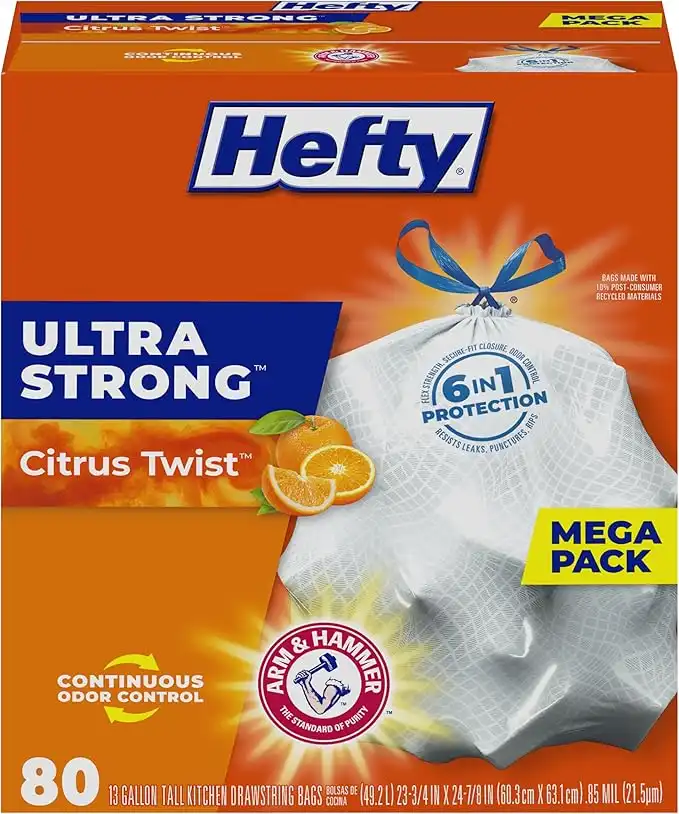 Hefty Ultra Strong Tall Kitchen Trash Bags 13 Gallon Citrus Twist Scent 80 Count