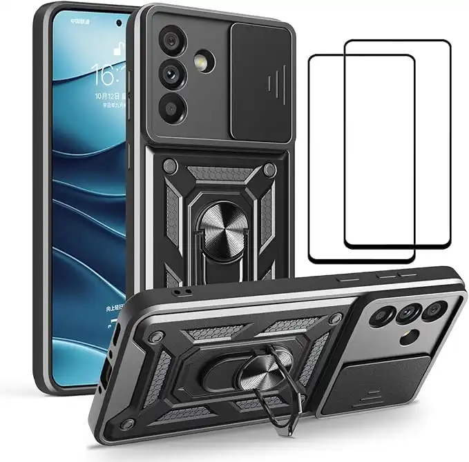 amazon.comfor Samsung Galaxy A56 5G Case with Slide Camera Cover and Stand Kickstand Ring with Tempered Glass Screen Protector [2 pieces],Military Grade Shockproof Protective Cover, Black