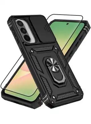 noon.comSamsung Galaxy A56 Case with HD Full Screen Tempered Glass Screen Protector, Slide Camera Cover, Built-in 360° Rotate Ring Kickstand, Heavy Duty Shockproof Drop Proof Protective Case for Samsung Galaxy A56 6.7 inch (Black, 1+1 Pack)