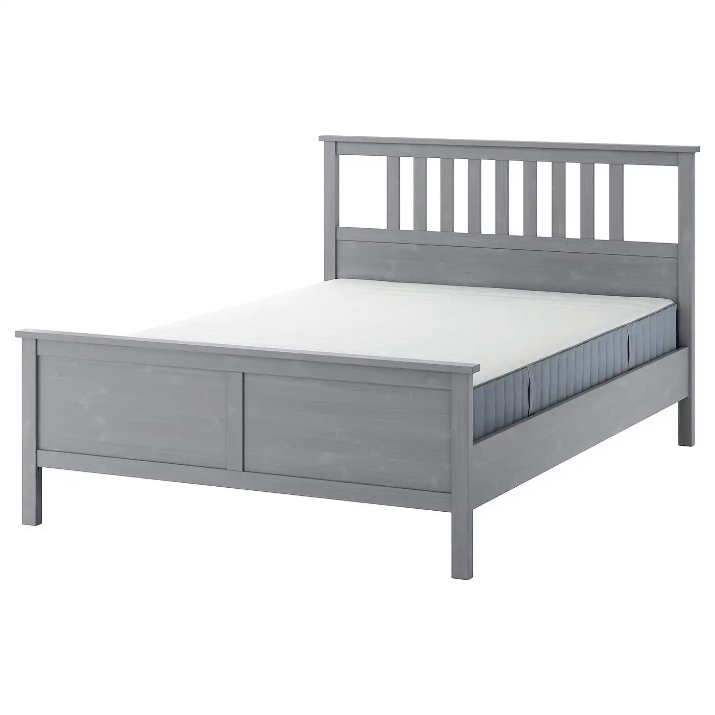 HEMNES Bed frame with mattress - grey stained/Valevåg firm 180x200 cm