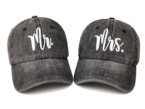 Hepandy Baseball Caps Embroidered for Men & Women, Set of 2 - Mr and Mrs - Washed Black Black, One size