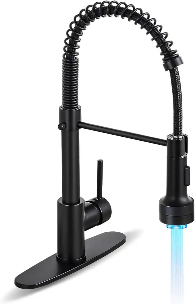 HGN Kitchen Faucet with LED Light Sprayer,Pull Down Sprayer Single Handle Spring Kitchen Sink Faucet,Matte Black — Price History & Tracker | DeserTracker