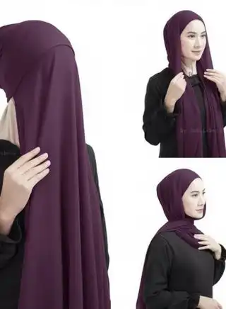 Hijab with Cap Dark Purple Soft Chiffon Comfortable Breathable Stretch Fabric Instant Hijab Lightweight Modest Wear
