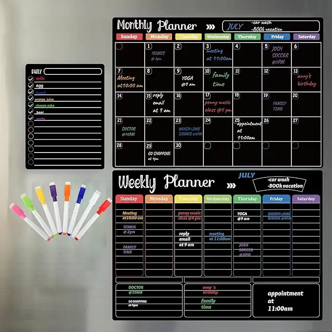 Hivillexun Magnetic Black Dry Erase Calendar White Board Set (3-Pack) - Monthly, Weekly Planners & Daily Notepad for Fridge, Home & Office, Includes 8 Markers — Price History & Tracker | DeserTracker