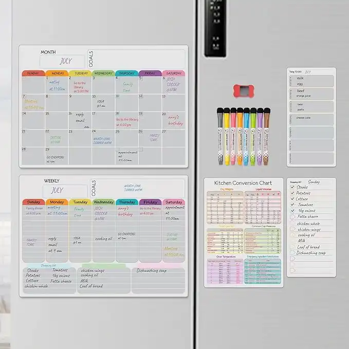 amazon.aeHivillexun Magnetic Dry Erase Calendar Whiteboard Set (5-Pack) – Includes Monthly Planner, Weekly Planner, Meal Organizer, Conversion Chart, Shopping List – 8 Markers & Eraser for Family Organization